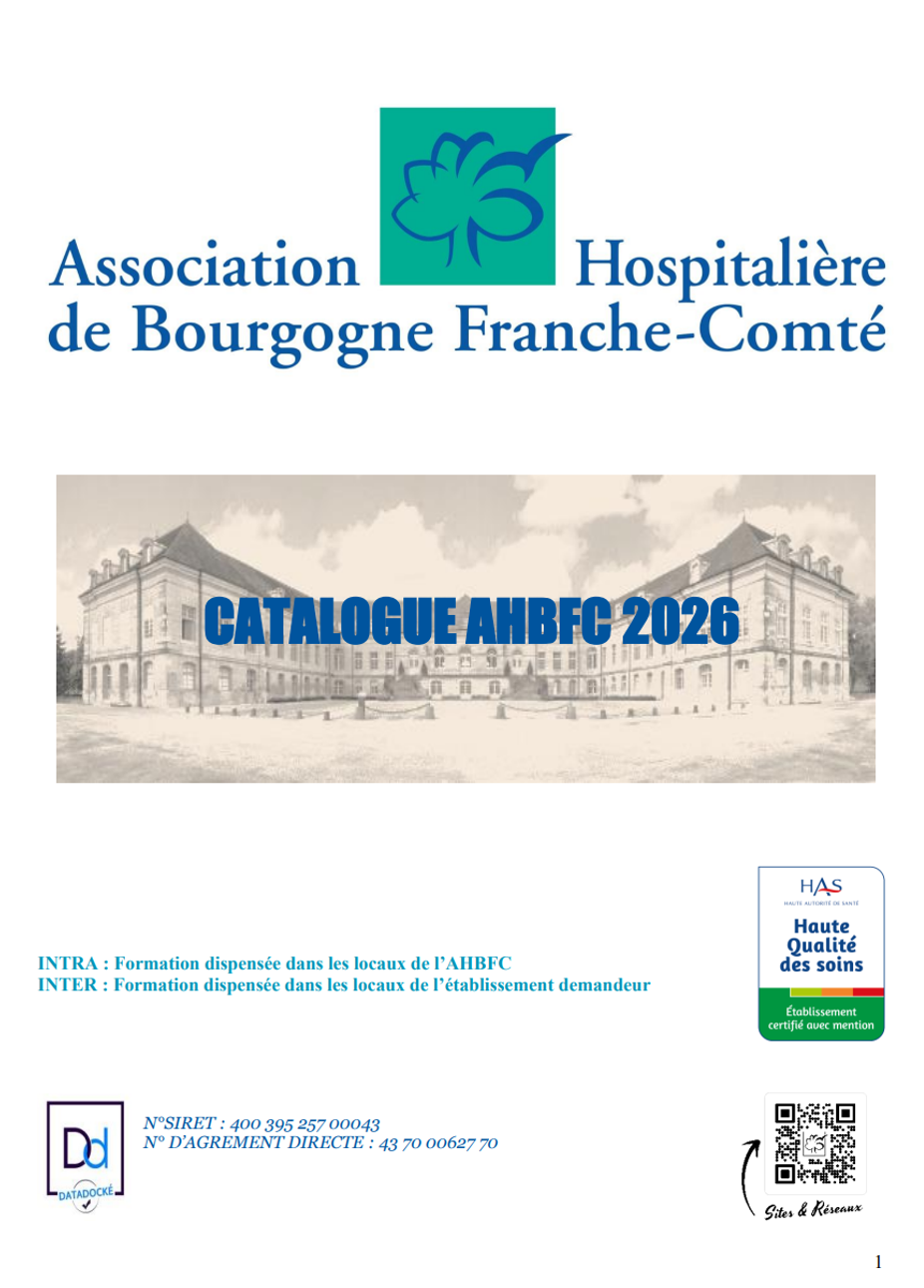 L'Association Hospitalière de Bourgogne Franche-Comté est agréée organisme de formation (n° d'agrément : 43 70 00627 70) et référencée par Datadock.